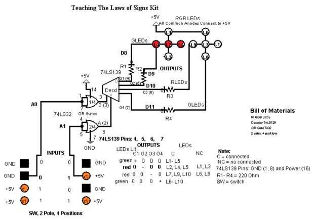 En el diagrama 2, se pueden ver la diferente combinación de entradas y salidas y también el uso de los cables negro y naranja para hacer el connections.to GND y + 5V respectivamente donde se pueden observar a las entradas (0, 1) menos, además de una salida (-) menos.