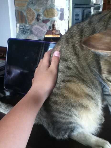 Empuje hacia abajo la parte inferior de su gato y hacer que se sientan