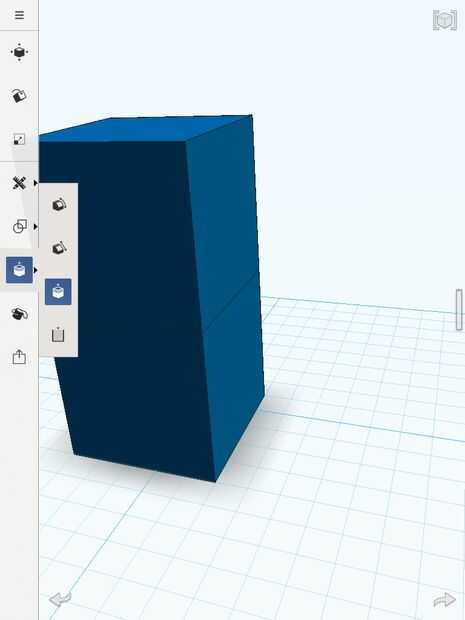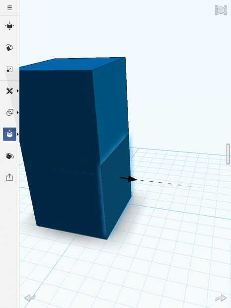 Seleccione el menú dar nueva forma y seleccionar el tercer icono abajo. Lea las instrucciones en la parte superior de la pantalla, "toque en una cara, entonces arrastre a tirar adentro o hacia afuera."