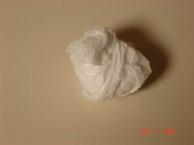 Luego ató la bolsa de plástico fuerte en forma de bola y frotado algunos tratar de gato en él para hacerlo aún más apetecible.