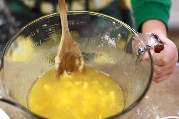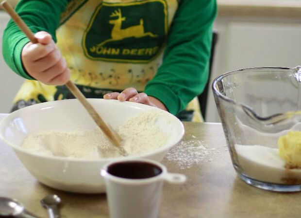Sugiero combinar los ingredientes secos juntos. Si quiere hacerlo bien (confesión: no, pero será la próxima vez!) Crema la manteca y el azúcar juntos, a continuación añadir el sorgo y el aromatizante. Ahora sólo puede comenzar a batir juntos los ingredientes secos y la mezcla de azúcar con crema, y si se pone grueso, seguir adelante y volcar en el agua caliente! Por experiencia, si esta tarta tenía huevos en él, y se vierte agua caliente sobre los huevos, se podrían obtener unos huevos escalfados! Tan interesante que este pastel no tiene huevos para el cocinero novato. Pensando en cómo mamá Sra. Floyd habría mandado le como ella los ingredientes juntos, por supuesto me hizo pensar en mi mamá y cómo estoy en mis puntillas a verla cocinar.