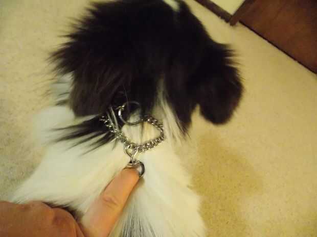 Cuando usar el collar del diente un buen ajuste es importante. Nunca deslice el collar sobre la cabeza del perro. Los enlaces de terminales que conforman el collar están hechos para desentrañar fácilmente colocarse alrededor del cuello. Apretando el extremo separado de la parte superior de un enlace puede cierre en el extremo de otro, o tire de ella fuera del final de otro para destrabarlo. Dientes vienen en tamaños de hacer; cuanto menor sea el diente, la más severa la corrección. Prefiero un diente muy pequeño porque generalmente no doy duras correcciones, prefiero simplemente uso presión manteniendo en mis perros, por lo que los dientes más pequeños funcionan mejor para eso. Usted querrá asegurarse de que los dientes apretados un poco en la parte superior del cuello, justo detrás de las orejas. Nunca permita que su diente a estar flojo, esto puede plantear peligros así como inhiben la eficacia y la formación.