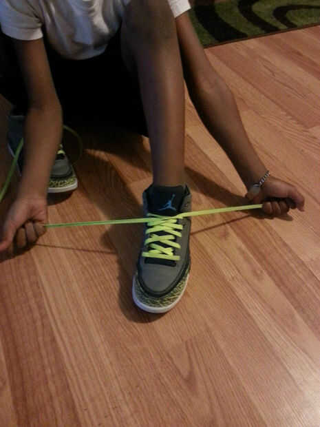 Enseñarle al niño a atar sus zapatos en 12 pasos (5 / 15 paso)