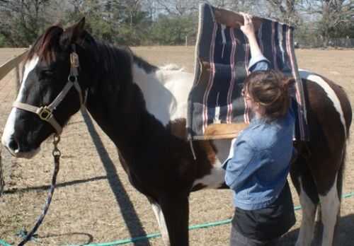 Una vez que el pad está libre de objetos duros, coloque la almohadilla en el caballo.