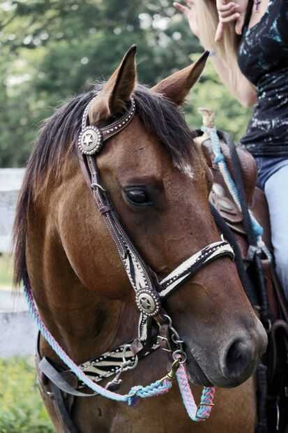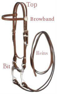La brida es probablemente la parte más complicada e importante del proceso saddling. Esto es cómo usted tiene el control del caballo. Este bit entra en la boca de caballos y las riendas son los mecanismos de dirección de la brida. Para poner la brida del caballo primero coloque su brazo entre las orejas de los caballos para que la mano puede tocar la frente del caballo. Sostenga la parte superior de la brida en su mano que está entre las orejas del caballo para que la broca esté por debajo de la barbilla del caballo. Con la otra mano Introduzca su dedo índice y el pulgar en cada esquina de la boca del caballo a anímelo a abrir su boca. Cuando el caballo abre su boca al mismo tiempo tire la brida hacia arriba para que la broca entra en la boca del caballo, apriete la parte superior de la brida hacia arriba y sobre las orejas de los caballos para que la parte superior de la brida está detrás de las orejas y la cabezada sobre la frente del caballo en frente van los oídos. Las riendas se colocan alrededor del cuello, para que cuando sentado en la silla de montar le puede alcanzar y aferrarse a ellos para dirigir al caballo.