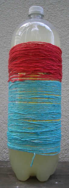 Cuando el hilo está aún un poco húmedo, desatar la madeja y envuelva el hilo razonablemente alrededor de una botella de limonada o algo similar para acabar con la sequía. Debe asegurar que termina lisa y torcedura-libre.