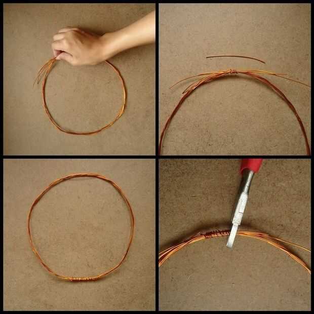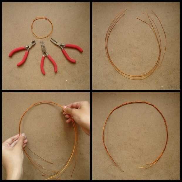 Tomar un manojo de cables. Según el grosor que desee en su tiara. La longitud de los cables debe ser por lo menos 3 pulgadas más grande que la circunferencia de su cabeza. Tomar el paquete de alambre y gírela suavemente. La torcedura de un extremo a otro