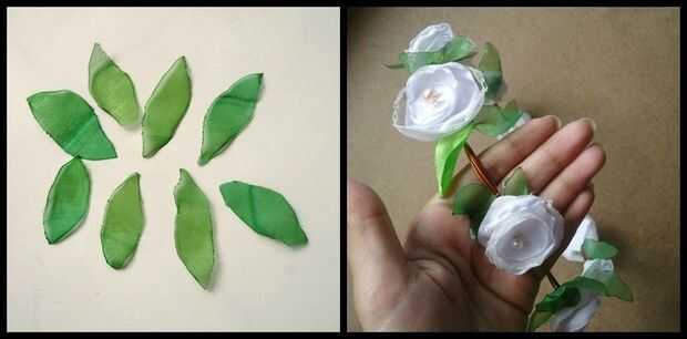 Realizar algunas hojas con tela de tejido. Puede utilizar a otras telas pero éste ajusta la corona mejor.