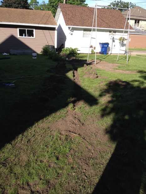 Una vez que el PVC se pega la puse en la zanja. Utiliza un 3"- 4" paso descendente de acoplamiento en el extremo del PVC y poner mi tubo corrugado negro alrededor del extremo de 3 pulgadas. Conecta bastante bien, así que el relleno era suficiente para sostener en hacer. Lanzó el resto del tubo corrugado negro en el resto de la zanja y rellenados todo.