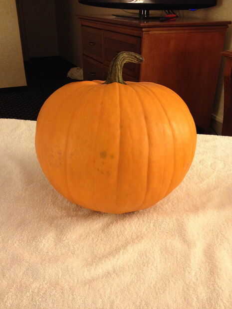 Primero necesitas una foto decentemente lisa calabaza (1) que no tiene muchas imperfecciones. El tamaño es de ti y cuánto tiempo y energía le gustaría pasar decorándola. Mi calabaza era aproximadamente 12" de ancho x 10" de alto. La otra cosa que deberás tener en cuenta es cómo se encuentra la calabaza. Desea una calabaza que le dan una buena zona para trabajar por sí mismo al sentarse erguido.