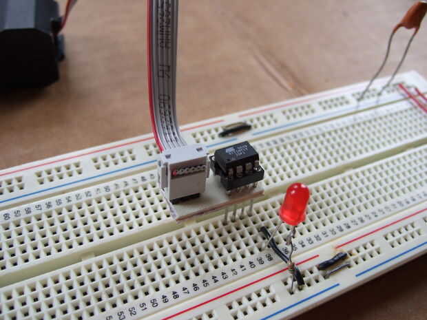 Utilizan una interfaz de blinky código para leer los valores de su microprocesador (lentamente). O hacer 8 de ellos y tiene una pantalla de un byte (más el ingrediente activo de Cylon ojos.)