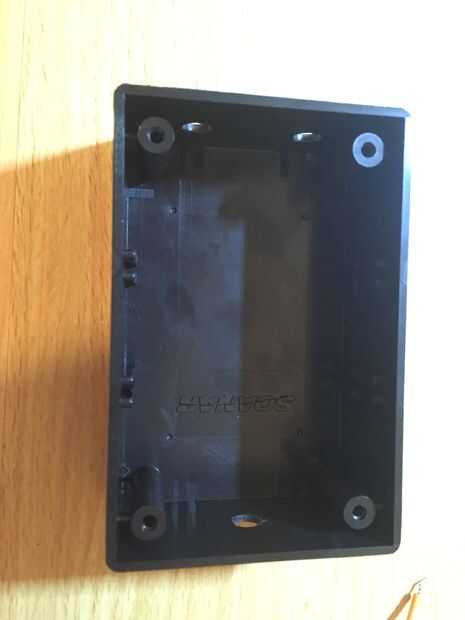 Aquí vamos a perforar algunos agujeros para que usted pueda montar las tomas de audio y el interruptor. Posición de los agujeros donde desee, pongo las dos entradas de audio en una cara y la salida en la cara opuesta de la cabina de audio. Pongo el interruptor en la parte frontal del recinto. Perfore agujeros de tamaño apropiados para las tomas de audio 3. El interruptor es un poco complicado sujetar a la caja y no hacer un trabajo muy prolijo en esto... Primero perforé un agujero en el centro aproximado de donde quería colocar el interruptor y luego terminé con la punta del soldador a derretir el resto del material. Por desgracia cuando hice esto, derritió mucho más material que yo quería y me quedé con un agujero que era más grande que el interruptor. Para evitar esto, recomiendo marcar hacia fuera el interruptor de antemano y derrite el plástico poco a poco. Use un cuchillo de la manía para recortar el exceso de plástico y hacer la cara de la caja suave.