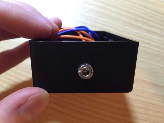 Montar tus tomas audio al recinto desenroscando la tuerca pequeña que viene adjunta con el zócalo. Empuje el conector a través del agujero que ha perforado y vuelva a colocar la tuerca para sujetar el encaje en su lugar. No olvide colocar las entradas en un lado de la caja y la salida en el lado opuesto. Ubicar el interruptor en su lugar y uso un poco de pegamento para fijarlo a la caja, tenga cuidado para evitar que el pegamento en el mecanismo del interruptor aunque, de lo contrario el interruptor no funcionará!