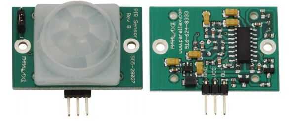 2. paralaje pasiva (p.i.r.) sensor infrarrojo (modelo # 555-28027 Rev B). Esto detecta objetos en cerca de 15 pies (puede variar a 30) por detección de movimiento a través de cambios en las firmas de calor.