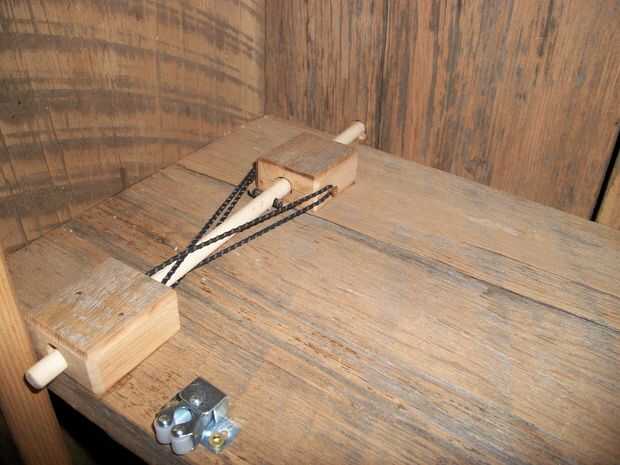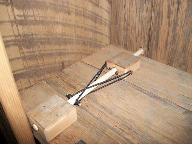 El tamaño del agujero debe ser un mm más grande que el tamaño de la espiga se utiliza. He encontrado 3/8" espiga trabajado mejor aquí. Perforé otro agujero a través de la parte posterior del gabinete que alineados con los de los bloques de madera.