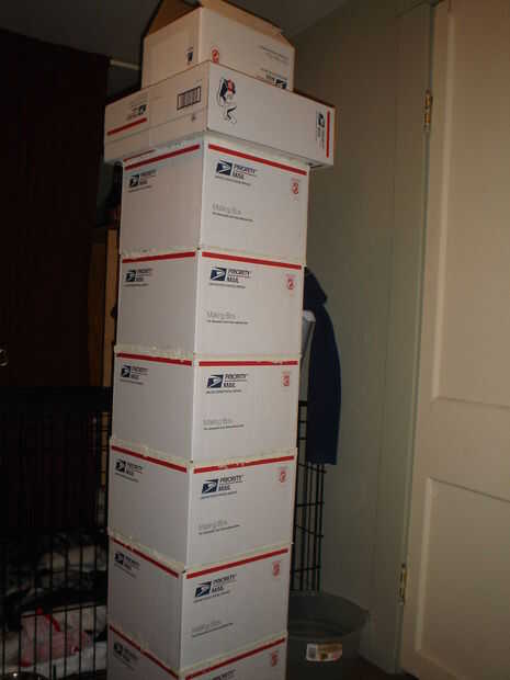 OK, nuevo, utilizando la misma técnica que hice mi chimenea imitación, utiliza mi prioridad sobra cajas de envío. Esta vez ya que las cajas eran más grandes y un poco más pesado, tenía que poner un par de tornillos entre cada uno para mantener juntos mejor.
