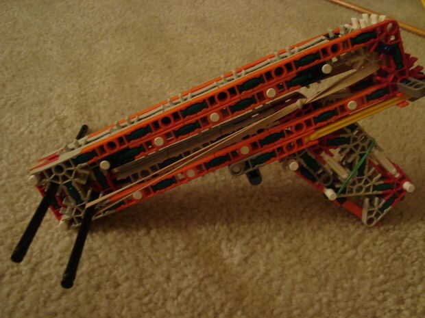 esta es mi versión modificada de escopeta pistola de kNeXFreek.Mejoras-No hay piezas rotas.-Revista es más delgada.-Más cómodo.-Disparador es más simple.-Parte más eficiente.