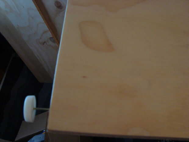 Lo primero que (el poste lijar todos los cortes ásperos) me instalo estos pequeños pies para proteger el piso. Las tablas más largas 2 eran los lados de la librería.