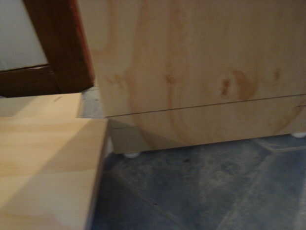 Quería el primer estante arriba el piso así que ponga un tablero debajo de él para llegar a la altura correcta y marcado de donde debe ser instalado en cada uno de los montantes.