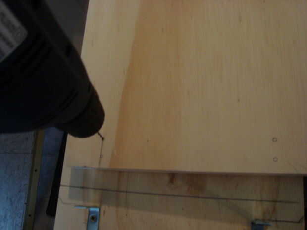 Entonces usé soportes en L para asegurar el estante a las paredes laterales. Nota - siempre perfore agujeros para los tornillos evitar que se resquebraje.