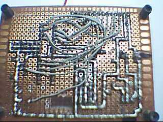 Construí esta en perf board como se puede ver. Usé un tablero más grande que haría normalmente para no tener que meter todo en el. Me dio más espacio para trabajar con.
