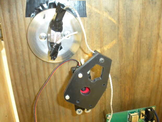 Esto es lo que se conecta directamente a la cerradura de puertas. Este servo específico fue controlado mediante el envío de pulsos de frecuencia específica en uno de sus pines. Las frecuencias apropiadas fueron encontradas por la experimentación y entonces programadas en el microcontrolador. Así, esto era una solución muy simple para abrir la puerta.