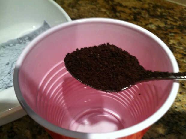 Dejar caer una cucharada o más de café en su taza de agua. Utilicé una cucharada, pero cuanto más utilice, más amarillo será el papel. Mezcle el café en el agua con la cuchara.