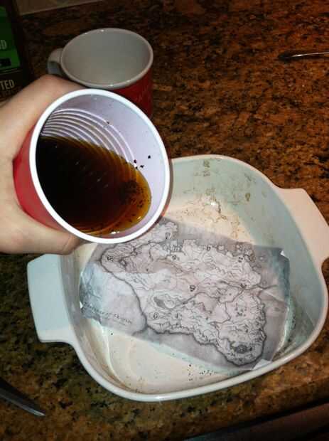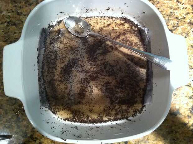 Coloca el papel en la bandeja de cocción. Vierta el café molido en el recipiente y sumergir completamente el papel. El café molido no ser totalmente mezclado con el agua, pero eso está bien. Deje el papel en el agua durante unos cinco minutos.