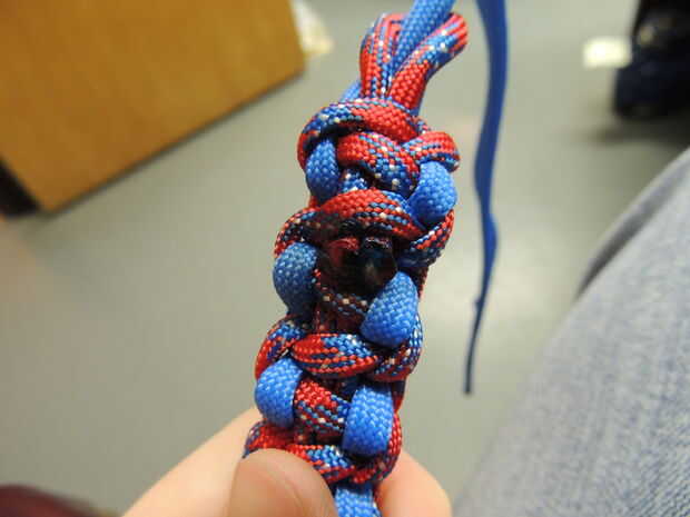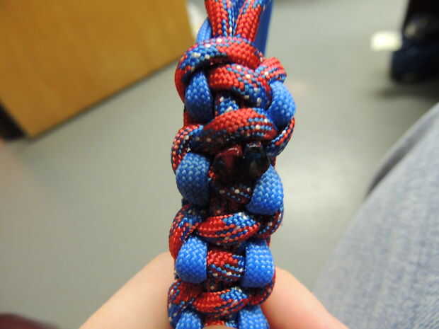 Cómo hacer un brazalete de Paracord King Cobra. La primera parte es igual a la pulsera del Paracord de Cobra, pero utiliza unos 18 pies de Paracord. Haga clic en instrucciones de la pulsera del Paracord y hacerlas primero pero no cortan el paracord.