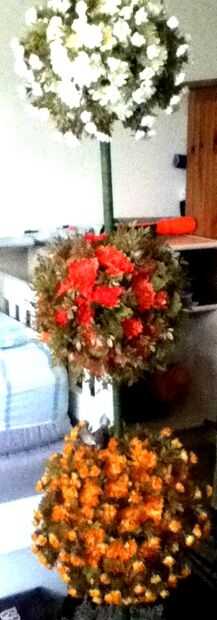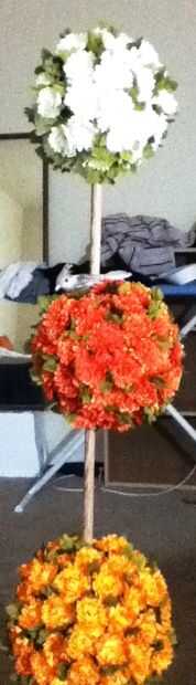 A veces existen a la venta en tiendas de artesanía se ven realmente bien, pero no del todo lo que quieras. Este arreglo floral tres niveles solía ser $175,00 y estaba en liquidación final por $10.00. Sí de Heck, lo compré. Yo he sido mirando este arreglo desde el floral especialista en AC Moore lo hizo el año pasado. El único problema de diseño que tuve fue que la vegetación extra y florecillas, meter, vibrante crema, naranja y amarillo de las flores más grandes que las bolas principales. En la base, piedras de río pequeñas fueron al azar calientes pegado en (cola claramente visible) y algunos musgos dispersos aquí y allá. No demasiado terriblemente atractivo, pero compré de todas formas, porque, con la suficiente fuerza de voluntad, puede ordenarse. Así que aquí está cómo lo hice.
