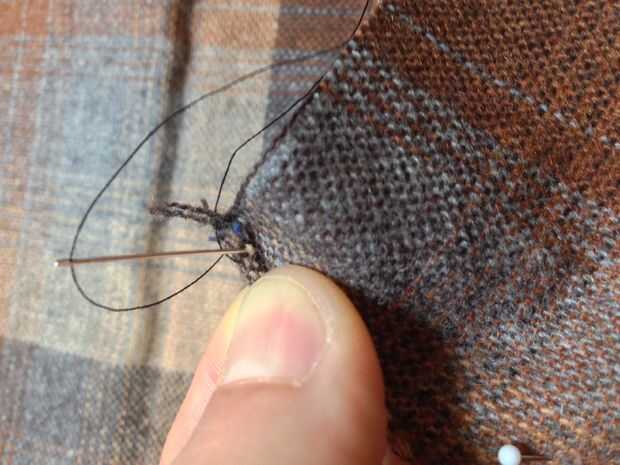 Completar el lado opuesto de la tela utilizando la técnica encontró en el paso 6. Una vez completada esta parte podemos trabajar en los lados de yuxtaposición. El aspecto más importante de este paso es para las esquinas y ancla el hilo por lo que la esquina no escuchada