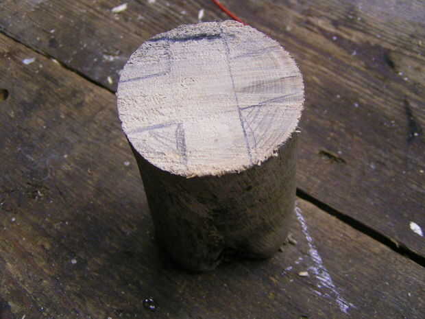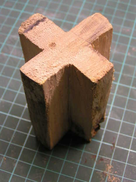 Usando una sierra para metales Júnior, cortar cuatro gajos hacia fuera para hacer una larga Cruz.