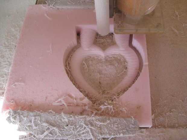 Primero necesitas un patrón de lo que quiere emitir. Se necesita dos corazones. Mina son aproximadamente 5" de alto y 3/4" densamente. Empezar con un trozo de aislante de espuma. Desea las cosas de color rosa o azul que venden en la ferretería. Es posible utilizar beadboard blanco pero es quebradiza y no dar como buena una resolución. Corté mis patrones de corazón en un router cnc (tengo el fallo de la cnc de este excelente instructable: pero terminó con planes desde aquí: