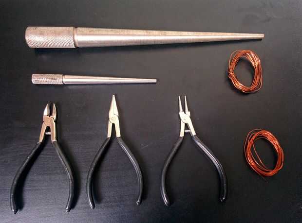 Dos tipos de alambre de la joyería (cobre, acero o plata su elección), ver imagen de arriba para hacerse una idea: