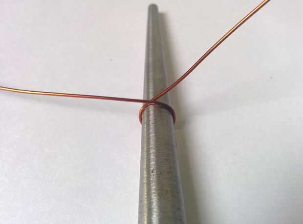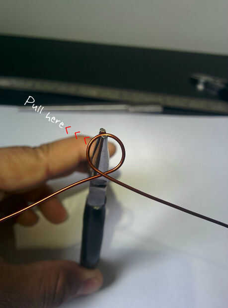4. Saque el alambre del mandril y sostener el lazo de media con alicates de punta plana.