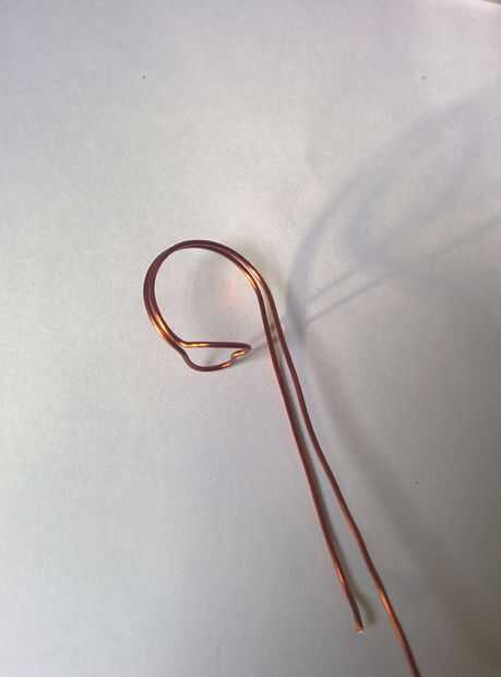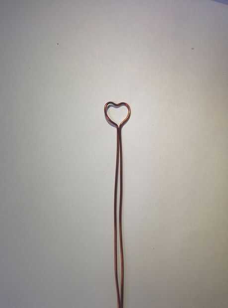 8. Con alicates de punta plana, doble los cables hacia abajo de donde ellos son intersección que forman las piernas del corazón, ver imagen.