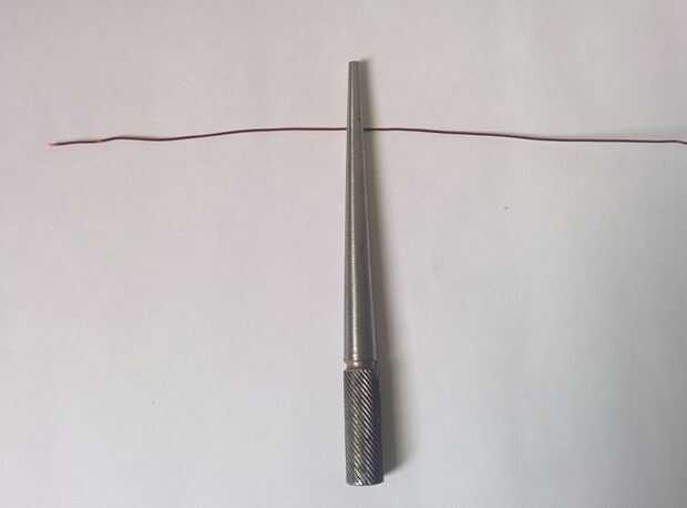 3. Envuelva el alambre de media alrededor de la parte superior del vástago (la parte fina) o una pluma como objeto, el objetivo de hacer un lazo alrededor de extremos de diameter.both de 0,5 cm de alambre debe intersectar entre sí.
