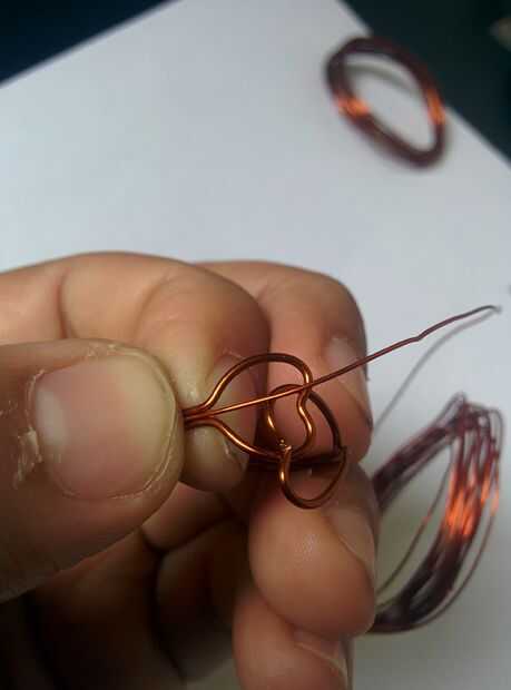 3. Inserte el alambre fino por detrás del corazón y doble paralelo a otros cables (ver imagen, donde mantengo el arreglo)