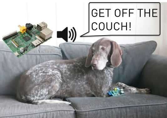 entrenador de perros invisibles que entrena a su perro a bajar de la cama. Cuando el perro se sienta en el sofá, el led parpadea y el perro recibe la orden de "Bajar el sofá". Cuando el perro del sofá oye el comando "perro bueno". Esta aplicación apareció en el blog de Bitreactive.