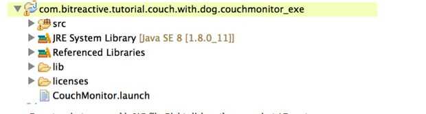 Haga clic derecho sobre el proyecto de exe / exportar y seleccione la configuración de CouchMonitor Luanch. Elegir un nombre para el JAR ejecutable, por ejemplo, CouchMonitor.jar