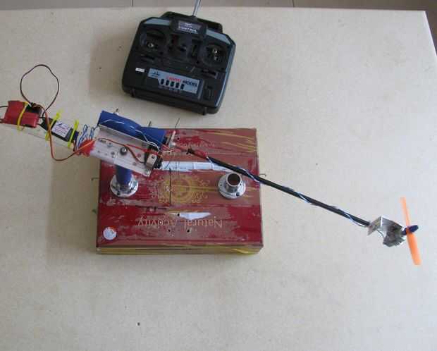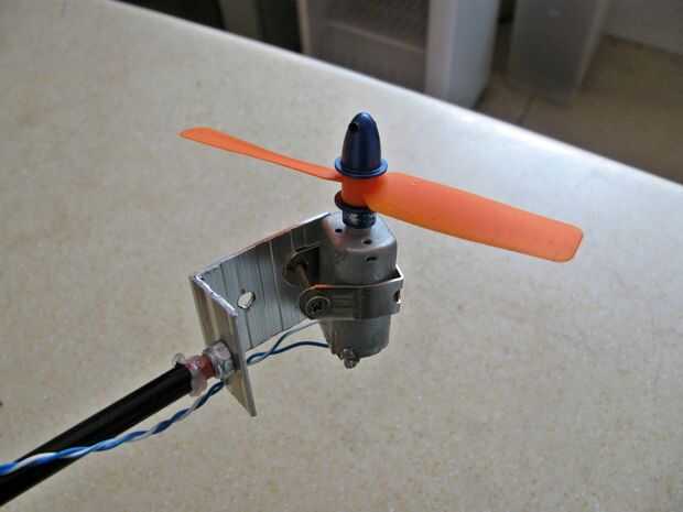 Foto 3: espectáculos servo conectado a la palanca de madera que gira el eje del motor/hélice que se unen a