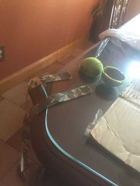 Tire de la cinta para que quede perfectamente alrededor de sus manos (Nota: Utilice el lado no adhesivo para medir) después de que medida lo doble para que pueda tener dos piezas para ambas manos y asegúrate de usar las pelotas de tenis en las manos durante la medición