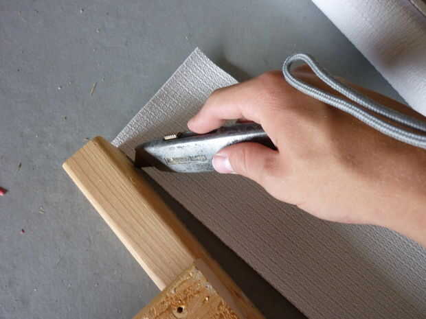cortar un rectángulo de forro y coloque la parte inferior del corto uno alineado con el lado 2. utilizar una cuchilla de afeitar para cortar los otros lados.