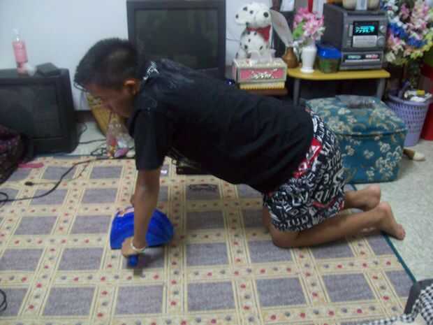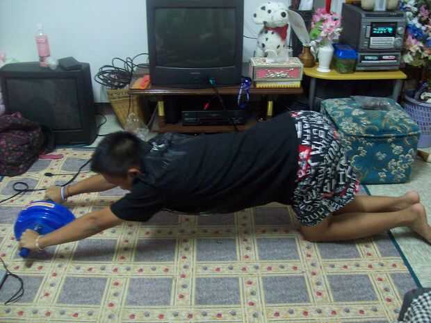 -Cuando se ha extendido como usted puede, tirar el Ab Slide vuelva hacia usted, para que acaben en una posición de arrastre. (segunda imagen)