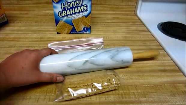 2. Utilice un rodillo para aplastar las galletas finamente.