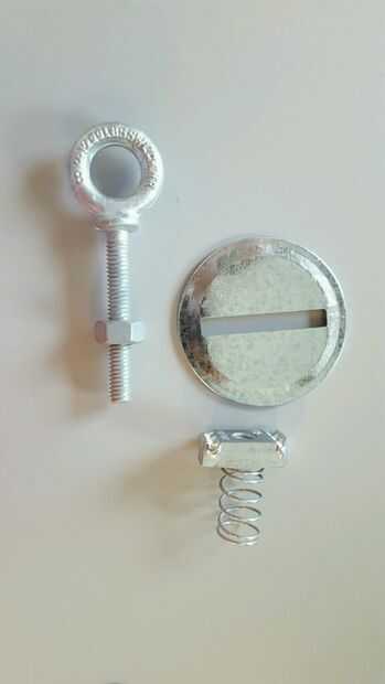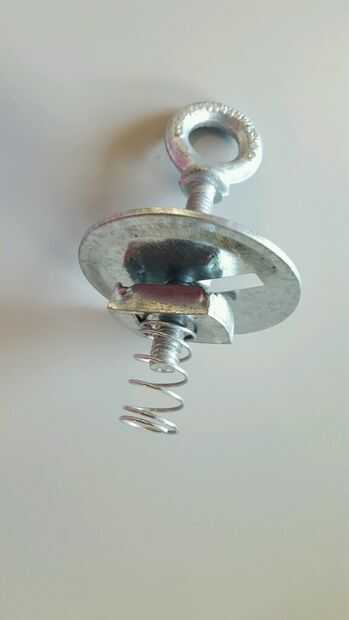El Unistrut es la pieza que permite que el cajón colgar del techo. Tomar los pernos de ojo forjado galvanizado con el hombro y la arandela plana a éste. Luego gire las tapas de tarro de masón de hucha en los pernos de ojo, seguidos por la Unistrut P1010-EG 1/2" canal tuerca con resorte regular. Presione y gire el Unistrut en el riel Unistrut. Repita este paso para hacer otro Unistrut.