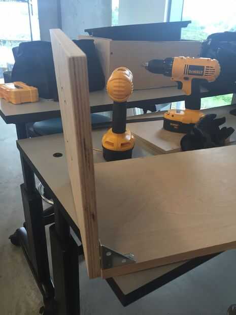 Atornille los soportes de esquina en las esquinas inferiores de la caja utilizando los tornillos que vienen con el soporte.