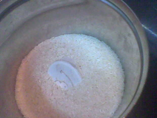 LUEGO LLENA EL RECIPIENTE GRANDE COMPLETAMENTE LA MITAD CON CUALQUIER TIPO DE CEREALES.