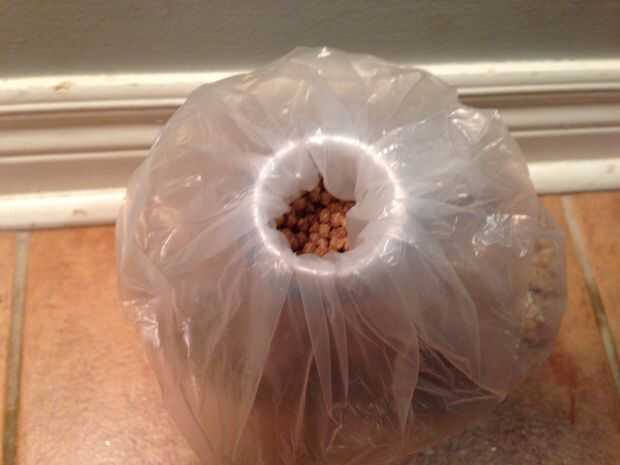 Paso 2: Introduzca la bolsa de cereales de plástico a través de la boquilla. Una vez termines puede enroscar la tapa.