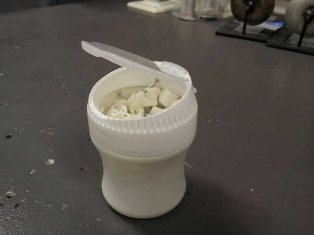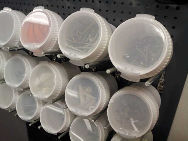 El problema llegó a ser dónde colocar las piezas pequeñas (una o dos piezas de tornillos, tuercas o cosas así). Realmente necesitaba encontrar una manera barata y práctica de almacenar estos artículos desde que primero y por la mayoría quiere usarlos en lugar de los recibí un montón de. Finalmente se me ocurrió la idea, comencé a recoger goma de mascar usada, vacío, contenedores y colocándolos en largos ganchos (ver fotos) realmente tengo les cierre al hacer mis proyectos DIY. Espero que esto ayuda a alguien así.